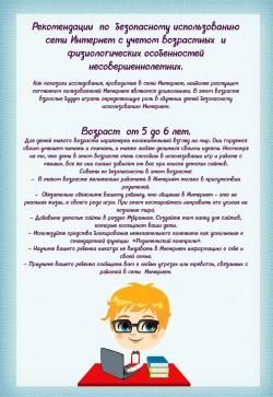 С учетом этого Вам предлагаются правила работы в сети Интернет для различных возрастных категорий, соблюдение которых позволит обеспечить информационную безопасность ваших детей.